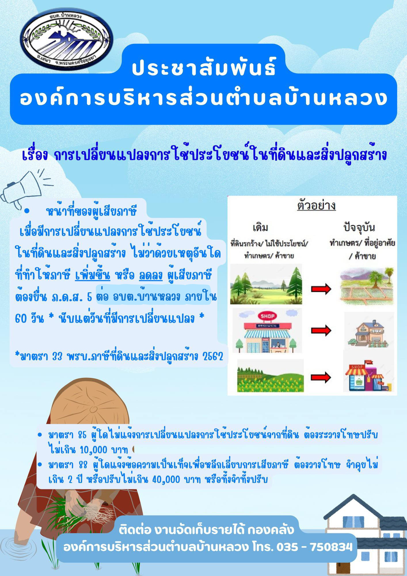 ประชาสัมพันธ์ เรื่องการเปลี่ยนแปลงการใช้ประโยชน์ในที่ดินและสิ่งปลูกสร้าง
