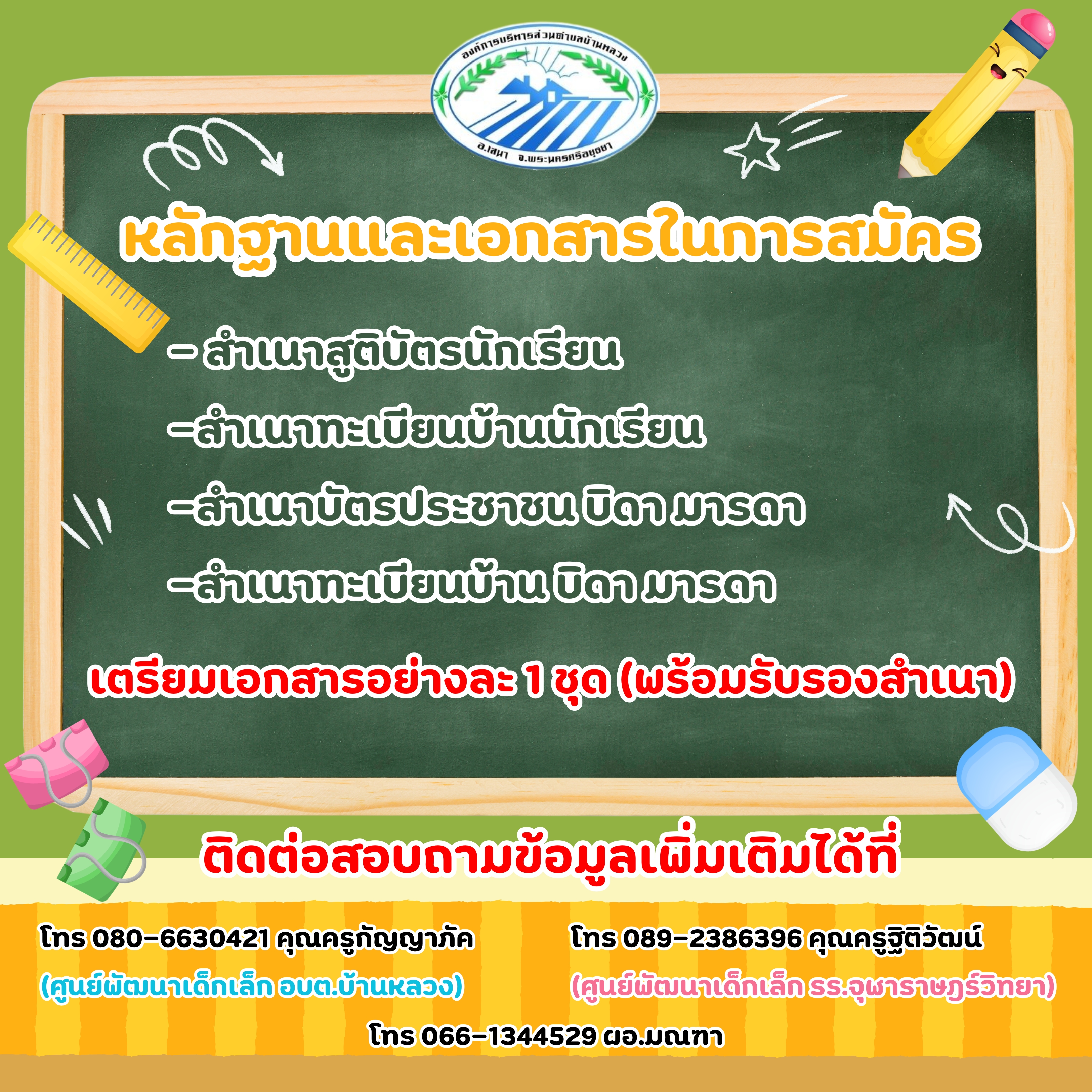 080-6630421 ครูกัญญาภัค ศพด.อบต.บ้านหลวง