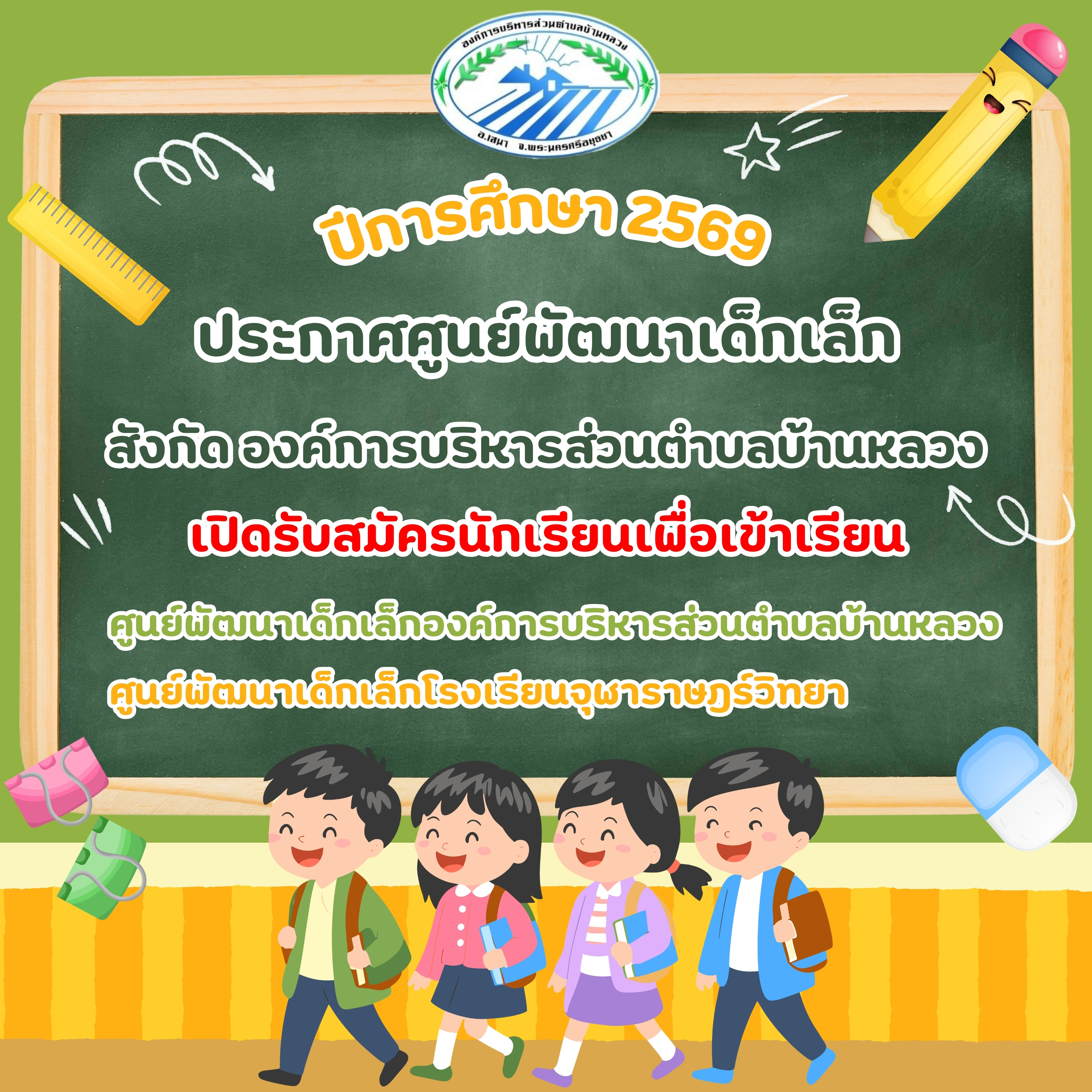 ประชาสัมพันธ์การรับสมัครนักเรียน ศูนย์พัฒนาเด็กเล็ก ปีการศึกษา 2569