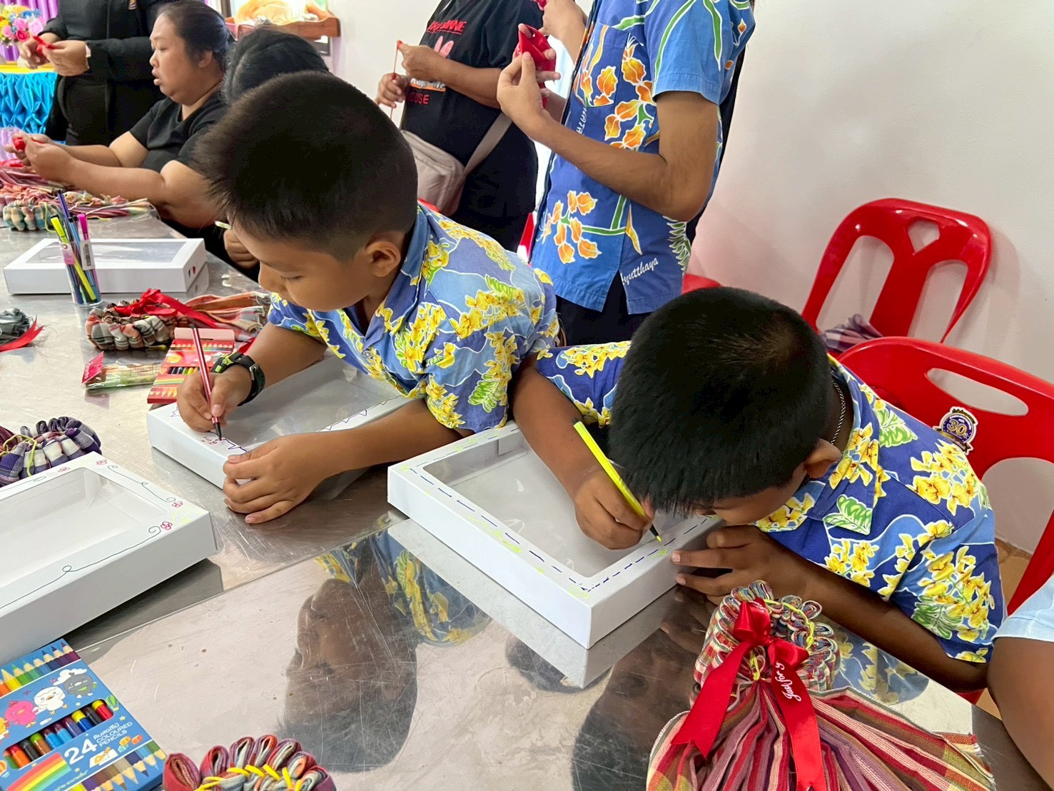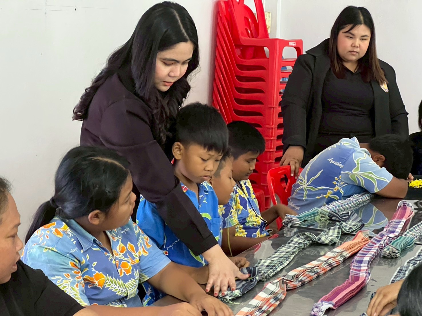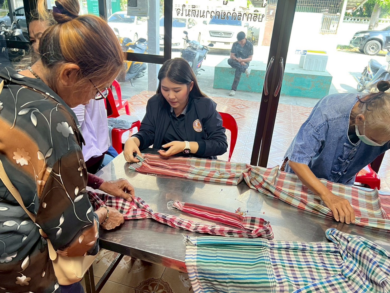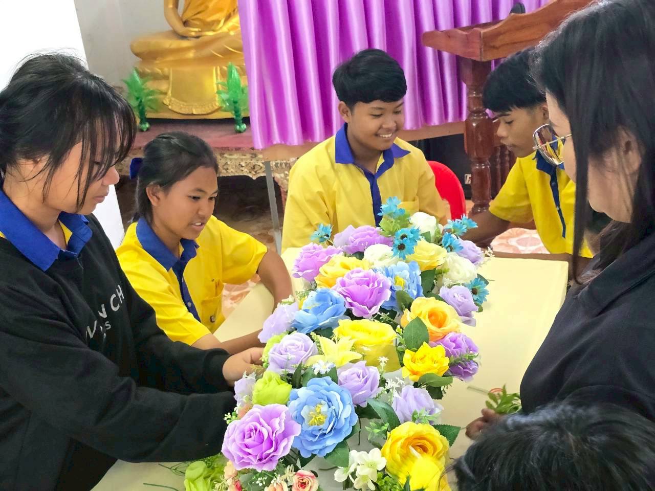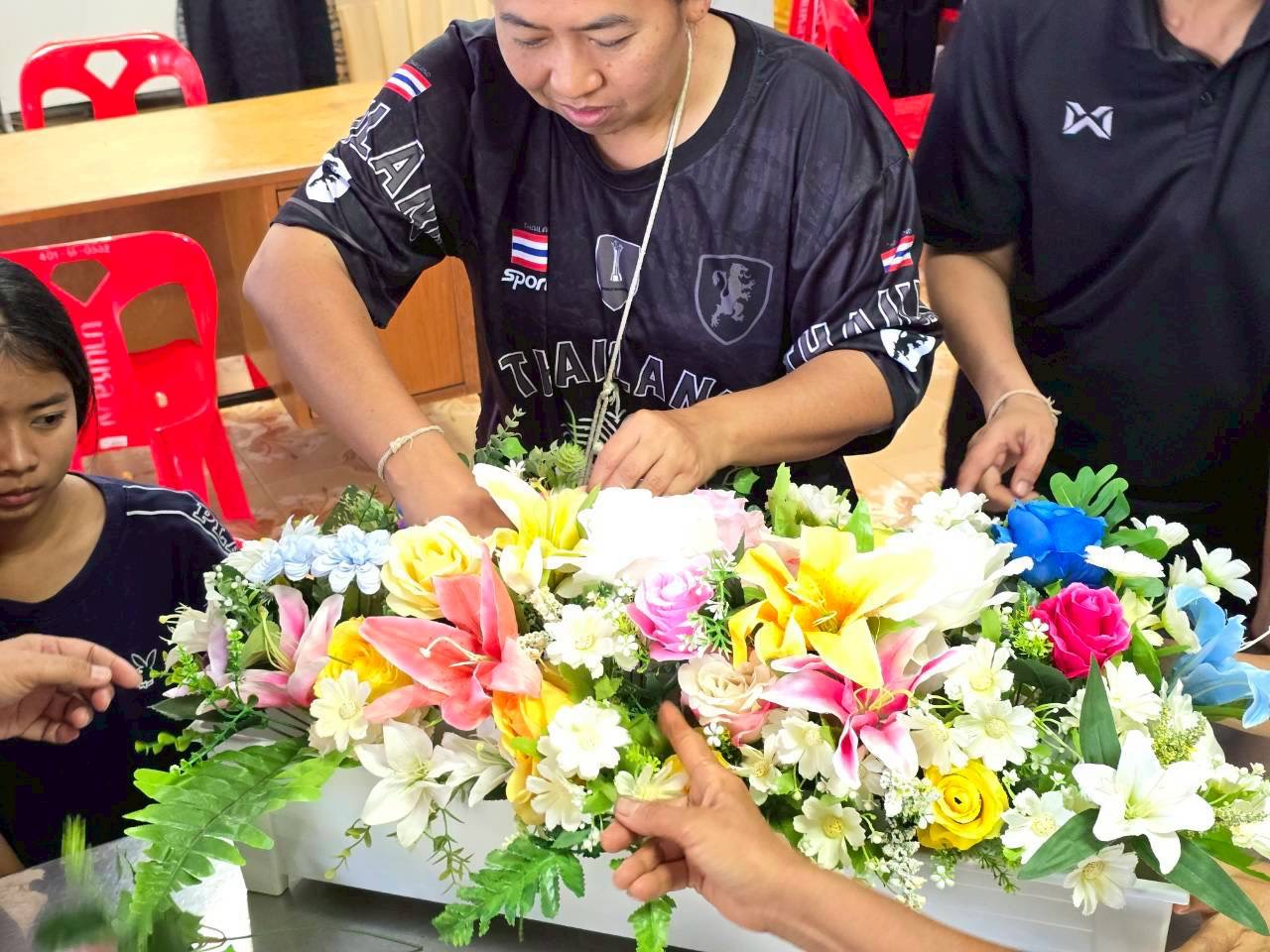 โดยมีประชาชนในพื้นที่เข้าร่วมอบรมตลอดระยะเวลาโครงการ วันละ 50 คน ซึ่งเป็นการฝึกปฏิบัติด้านการผูกผ้าประดับสถานที่