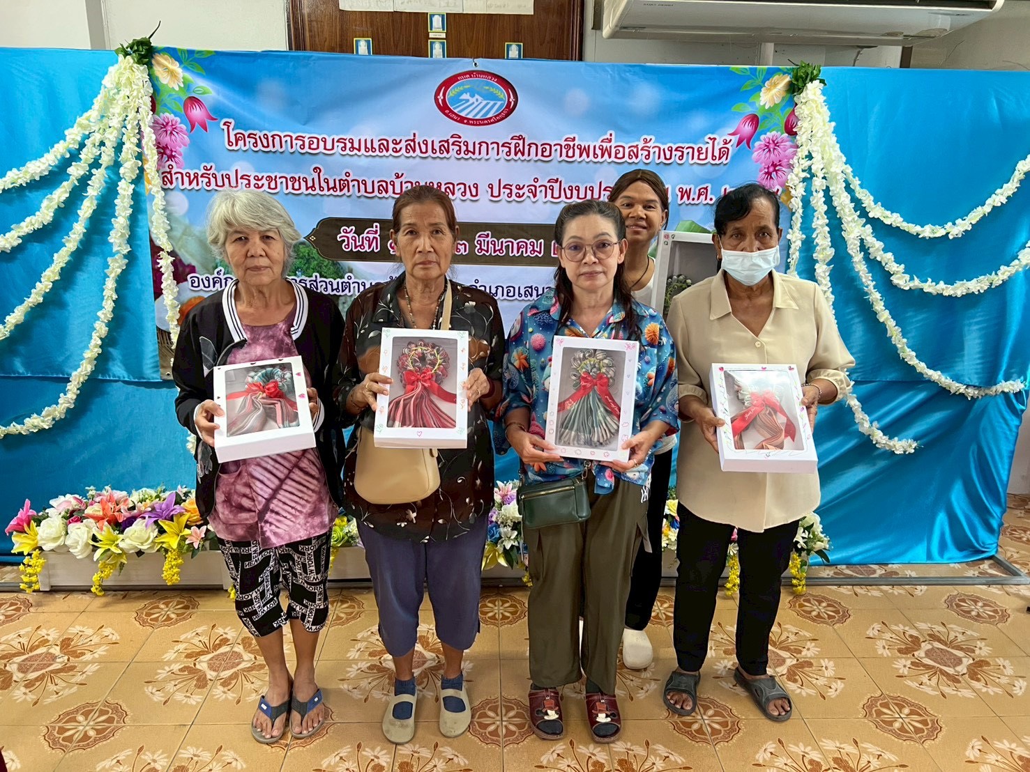 การจัดดอกไม้ การทำไข่เค็มสมุนไพร การทำแหนมหมู การทำพวงมาลัยจากผ้าขาวม้า พร้อมทั้งเสริมความรู้ด้านการออกแบบบรรจุภัณฑ์